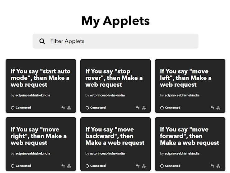 4.2 Configure IFTTT for Controlling Robot through Google Assistant4.2.1 Open the IFTTT site by open https://ifttt.com make your account and login. Click on Create and Select Applets.